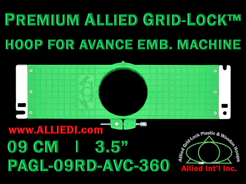 Premium Allied Grid-Lock 9 cm (3.5 inch) Round Avance Embroidery Hoop - 360 mm Arm Spacing