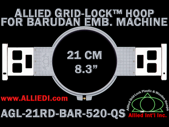 Allied Grid-Lock 21 cm (8.3 inch) Round Barudan Embroidery Hoop - 520 mm Arm Spacing - QS Type Brackets (Clips)