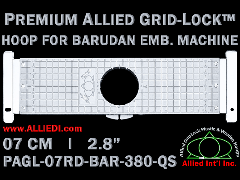 Premium Allied Grid-Lock 7 cm (2.8 inch) Round Barudan Embroidery Hoop - 380 mm Arm Spacing - QS Type Brackets (Clips)