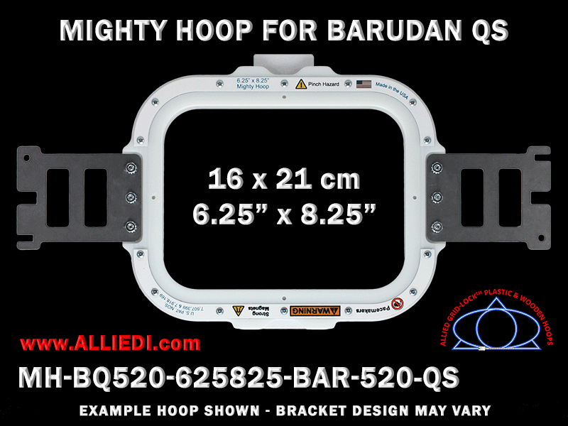 Mighty Hoop 6.25 x 8.25 inch (16 x 21 cm) Rectangular Barudan Embroidery Hoop - 520 mm Arm Spacing QS Type