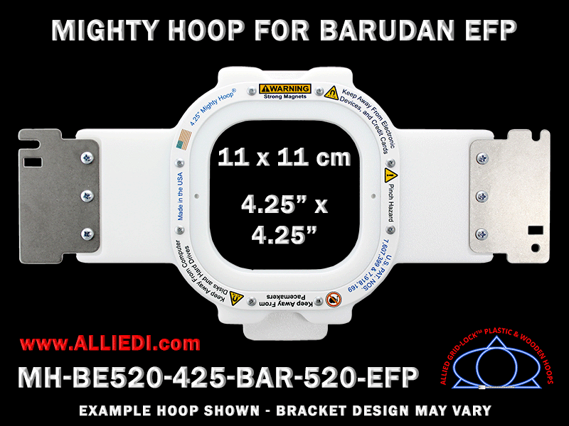 Barudan 4.25 x 4.25 inch (11 x 11 cm) Square Magnetic Mighty Hoop for 520 mm Sew Field / Arm Spacing EFP Type