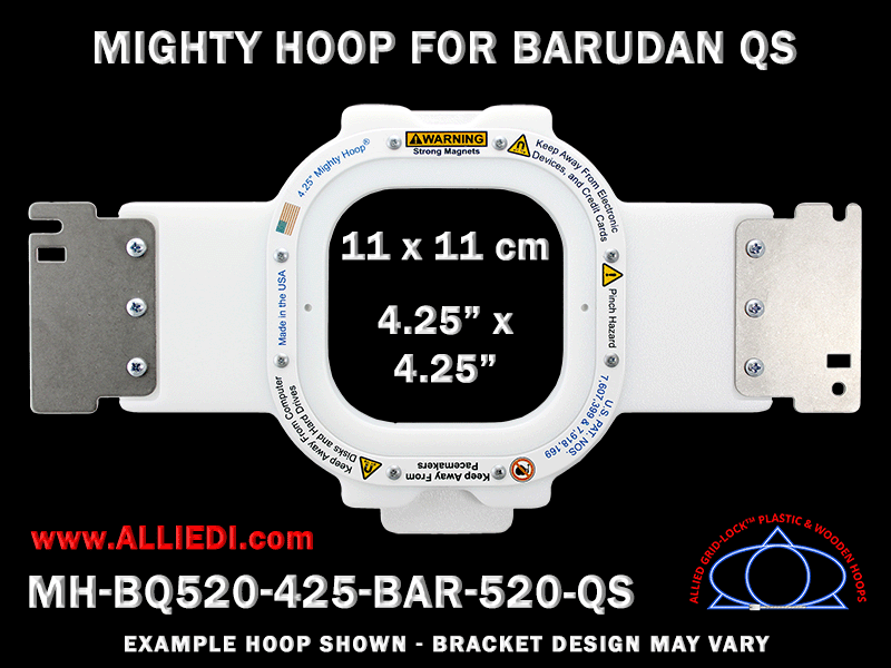 Mighty Hoop 4.25 x 4.25 inch (11 x 11 cm) Square Barudan Embroidery Hoop - 520 mm Arm Spacing QS Type