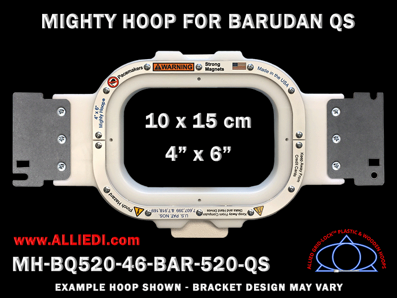 Barudan 4 x 6 inch (10 x 15 cm) Rectangular Magnetic Mighty Hoop for 520 mm Sew Field / Arm Spacing QS Type