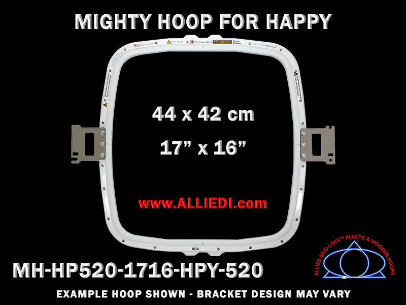 Happy Japan 17.25 x 16.6 inch (44 x 42 cm) Rectangular Magnetic Mighty Hoop for 520 mm Sew Field / Arm Spacing