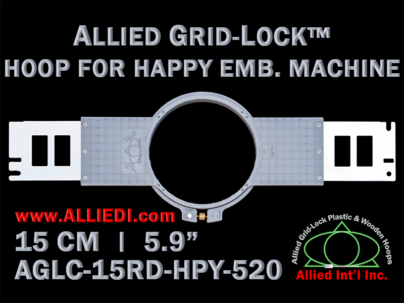 Happy Japan 15 cm (5.9 inch) Round Allied Grid-Lock Hoop (New Design) for 520 mm Sew Field / Arm Spacing