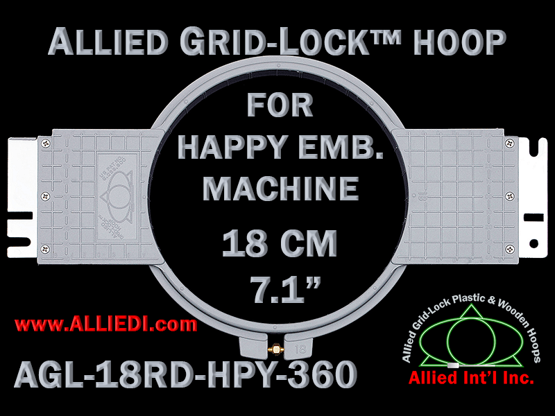 Happy Japan 18 cm (7.1 inch) Round Allied Grid-Lock Hoop (New Design) for 360 mm Sew Field / Arm Spacing