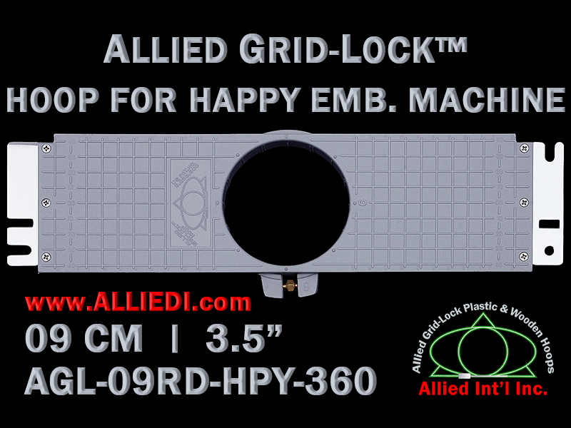 Happy Japan 9 cm (3.5 inch) Round Allied Grid-Lock Hoop for 360 mm Sew Field / Arm Spacing