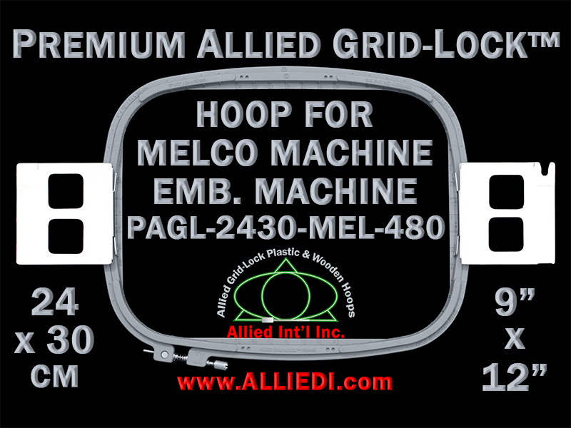 Premium Allied Grid-Lock 24 x 30 cm (9 x 12 inch) Melco Embroidery Hoop - 480 mm Arm Spacing