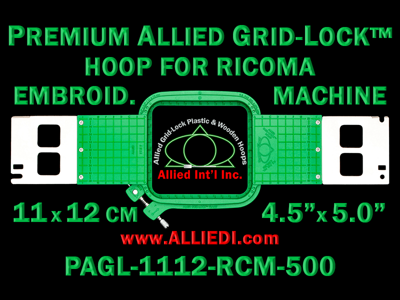 Premium Allied Grid-Lock 11 x 12 cm (4.5 x 5 inch) Ricoma Embroidery Hoop - 500 mm Arm Spacing