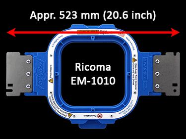 These Mighty Hoops (magnetic embroidery hoops) fit the Ricoma EM-1010 527 mm (appr. 20.7 inch) Sew Field.
