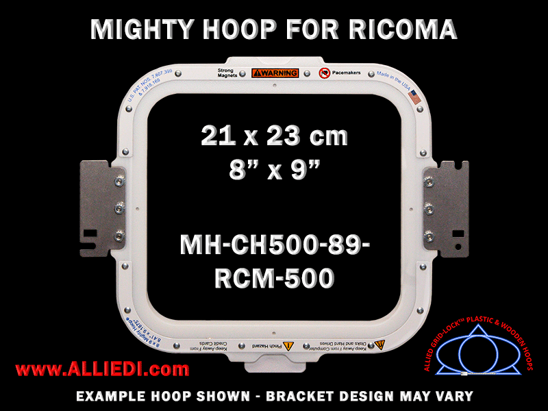 Mighty Hoop 8 x 9 inch (21 x 23 cm) Square Ricoma Embroidery Hoop - 500 mm Arm Spacing