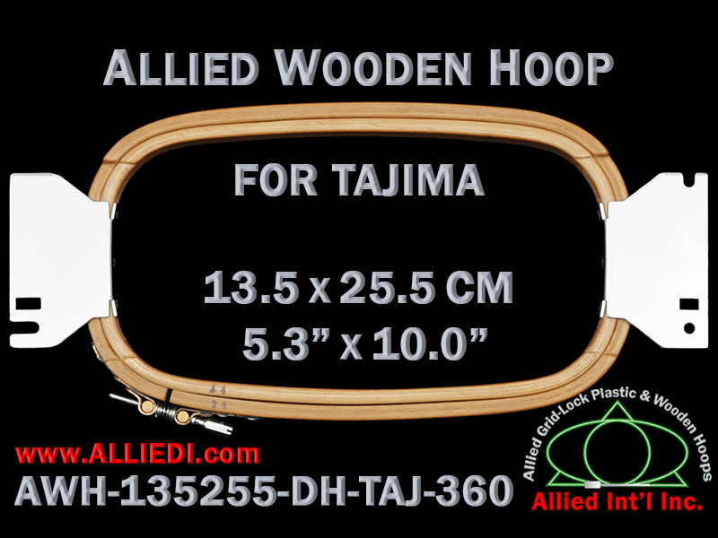 Allied Wooden 13.5 x 25.5 cm (5.3 x 10.0 inch) Double Height (DH) Tajima Embroidery Hoop - 360 mm Arm Spacing