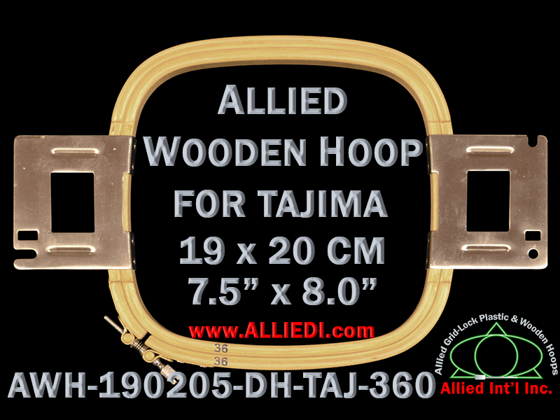 Allied Wooden 19.0 x 20.5 cm (7.5 x 8.1 inch) Double Height (DH) Tajima Embroidery Hoop - 360 mm Arm Spacing
