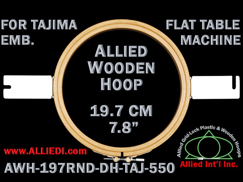 Allied Wooden 19.7 cm (7.8 inch) Round Double Height (DH) Tajima Embroidery Hoop - 550 mm Flat Table Mounting