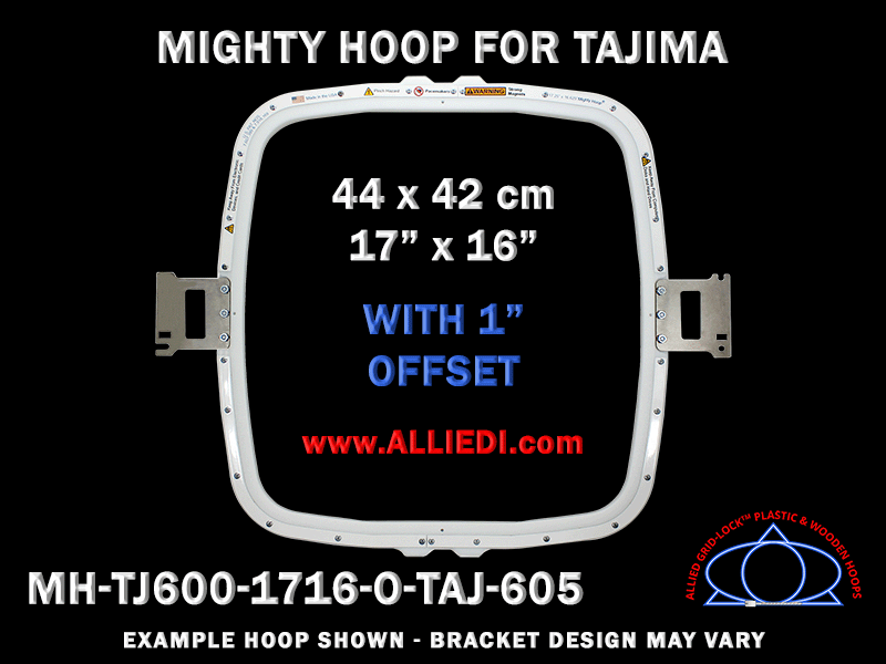 Mighty Hoop 17.25 x 16.6 inch (44 x 42 cm) Rectangular Tajima Embroidery Hoop with 1 Inch Offset - 600 mm Arm Spacing