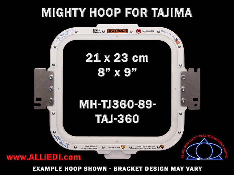Mighty Hoop 8 x 9 inch (21 x 23 cm) Square Tajima Embroidery Hoop - 360 mm Arm Spacing