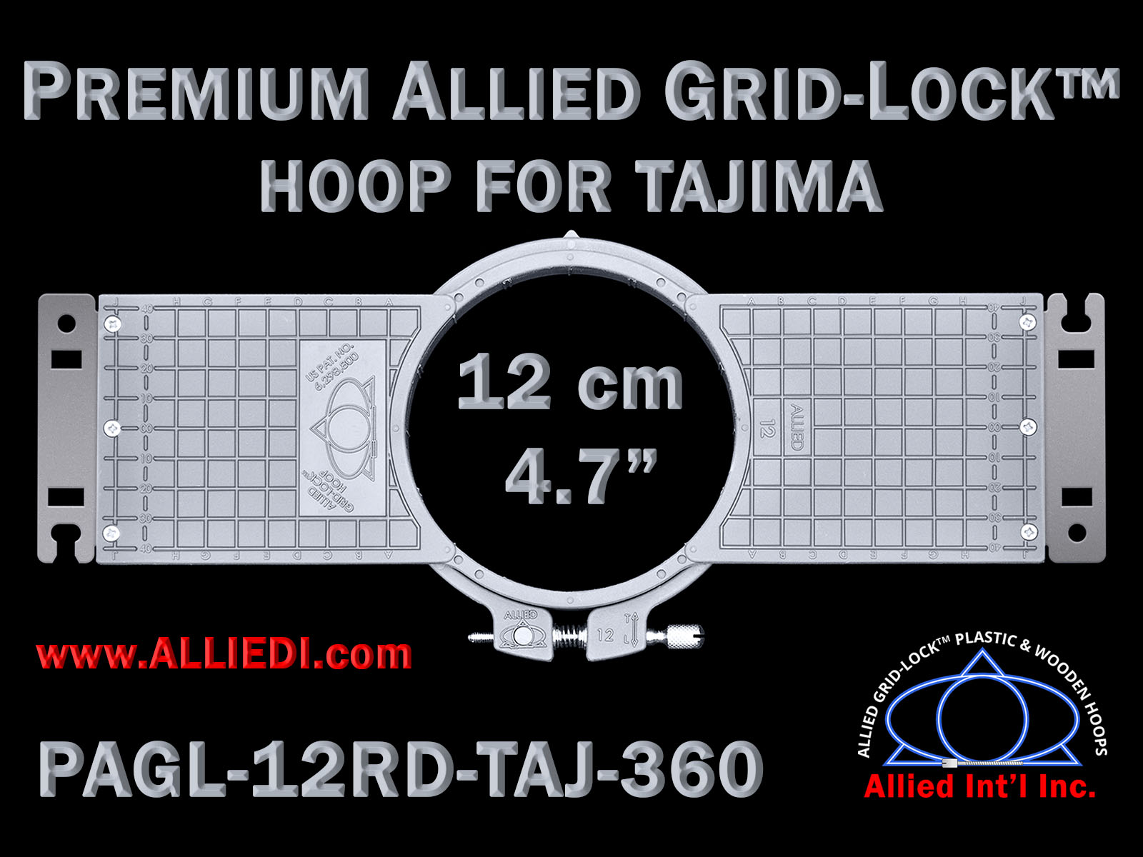 Premium Allied Grid-Lock 12 cm (4.7 inch) Round Tajima Embroidery Hoop - 360 mm Arm Spacing