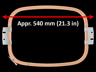 These Allied Wood (AWH) ZSK hoops fit the 540 mm (appr. 21.3 inch) Extended Arm Sew Field.