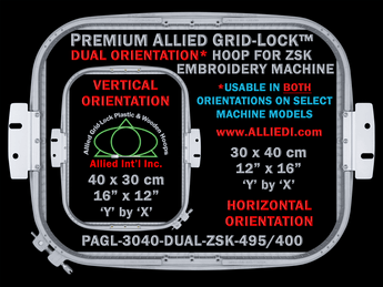 Premium Allied Grid-Lock 30 x 40 cm (12 x 16 inch) Dual Orientation ZSK Embroidery Hoop - 495 mm & 400 mm Arm Spacings