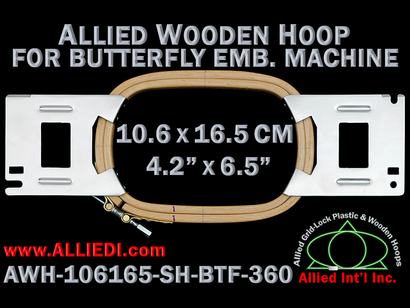 Allied Wooden 10.6 x 16.5 cm (4.2 x 6.5 inch) Single Height (SH) Butterfly Embroidery Hoop - 360 mm Arm Spacing
