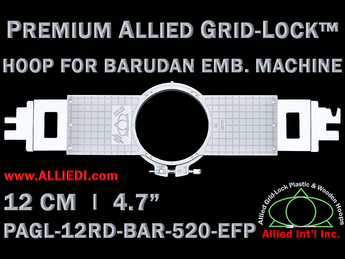 Premium Allied Grid-Lock 12 cm (4.7 inch) Round Barudan Embroidery Hoop - 520 mm Arm Spacing - EFP Type Brackets (Clips)