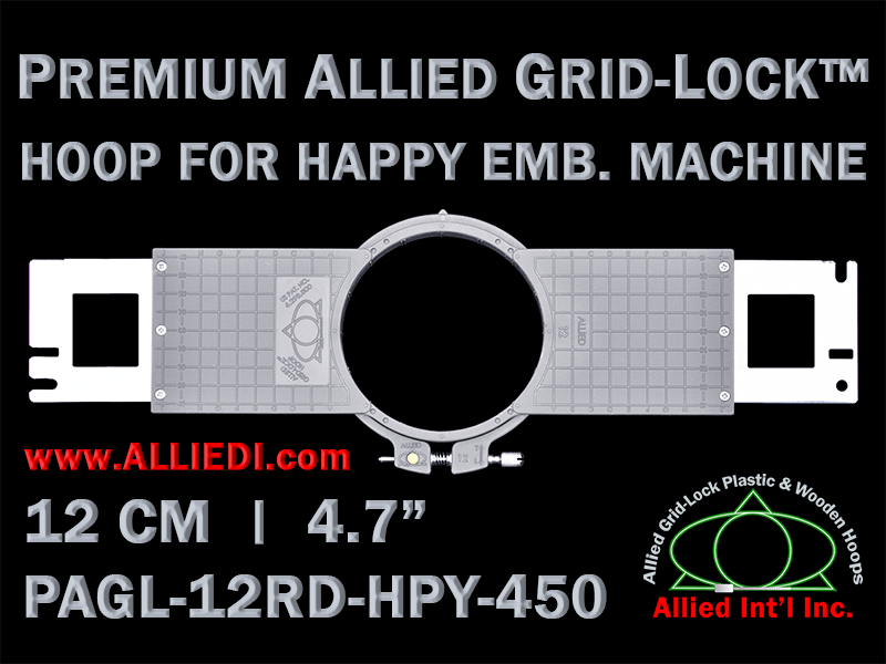 Premium Allied Grid-Lock 12 cm (4.7 inch) Round Happy Japan Embroidery Hoop - 450 mm Arm Spacing