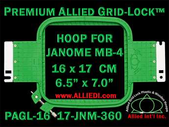 Premium Allied Grid-Lock 16 x 17 cm (6.5 x 7 inch) Janome Embroidery Hoop - 360 mm Arm Spacing