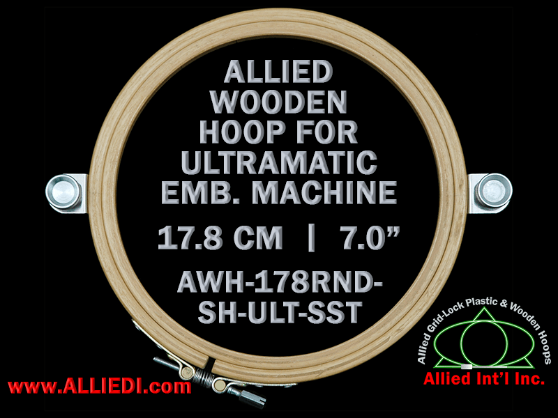 Allied Wooden 17.8 cm (7.0 inch) Round Single Height (SH) Embroidery Hoop - For Ultramatic 236 mm Short Screw Type Mounting, Flat Table Machine