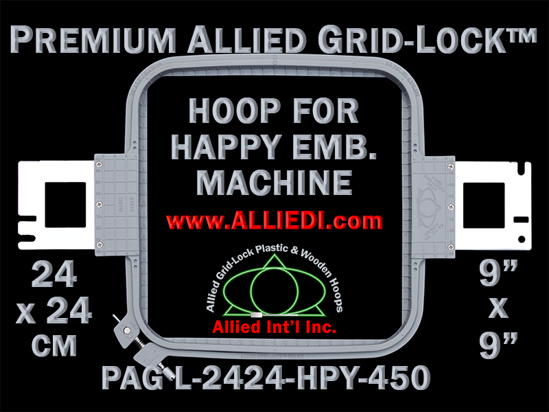 Premium Allied Grid-Lock 24 x 24 cm (9 x 9 inch) Happy Japan Embroidery Hoop - 450 mm Arm Spacing