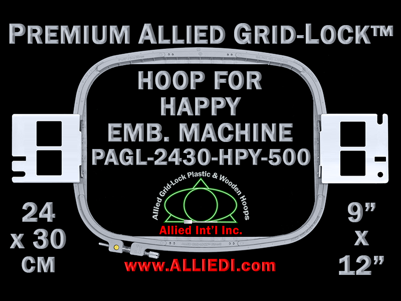 Premium Allied Grid-Lock 24 x 30 cm (9 x 12 inch) Happy Japan Embroidery Hoop - 500 mm Arm Spacing