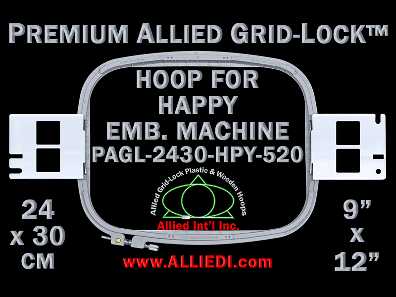 Premium Allied Grid-Lock 24 x 30 cm (9 x 12 inch) Happy Japan Embroidery Hoop - 520 mm Arm Spacing