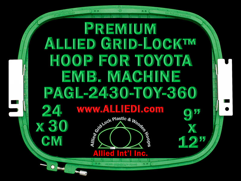 Premium Allied Grid-Lock 24 x 30 cm (9 x 12 inch) Toyota Embroidery Hoop - 360 mm Arm Spacing