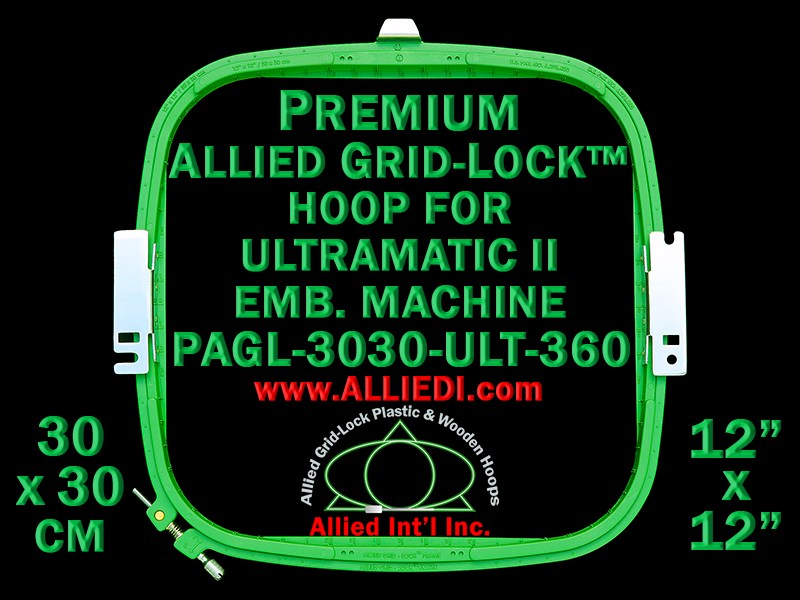 Premium Allied Grid-Lock 30 x 30 cm (12 x 12 inch) Ultramatic-II Embroidery Hoop - 360 mm Arm Spacing