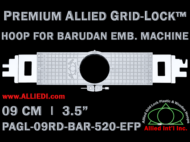 Premium Allied Grid-Lock 9 cm (3.5 inch) Round Barudan Embroidery Hoop - 520 mm Arm Spacing - EFP Type Brackets (Clips)