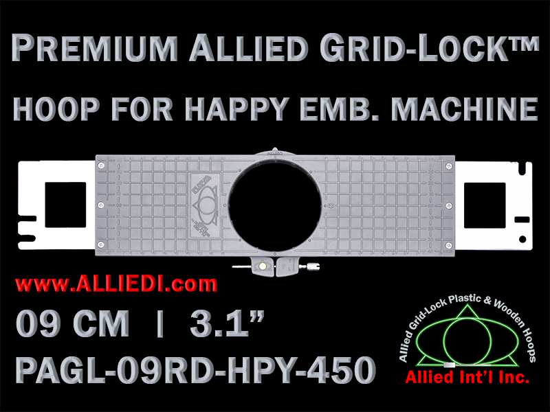Premium Allied Grid-Lock 9 cm (3.5 inch) Round Happy Japan Embroidery Hoop - 450 mm Arm Spacing