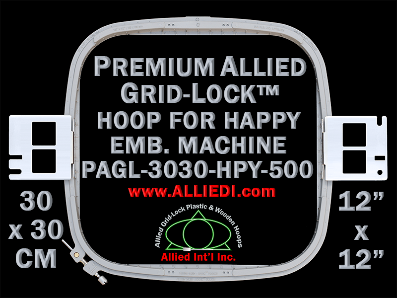 Premium Allied Grid-Lock 30 x 30 cm (12 x 12 inch) Happy Japan Embroidery Hoop - 500 mm Arm Spacing