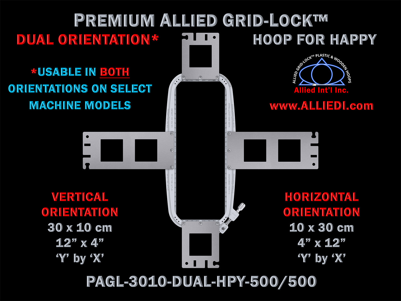 Happy Japan 30 x 10 cm (12 x 4 inch) Rectangular Premium Allied Grid-Lock DUAL ORIENTATION Embroidery Hoop for 500 mm Sew Field / Arm Spacing