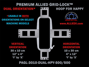 Premium Allied Grid-Lock 30 x 10 cm (12 x 4 inch) Dual Orientation Happy Japan Embroidery Hoop - 500 mm Arm Spacing