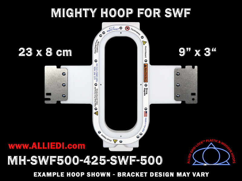 SWF 9 x 3 inch (23 x 8 cm) Vertical Rectangular Magnetic Mighty Hoop for 500 mm Sew Field / Arm Spacing
